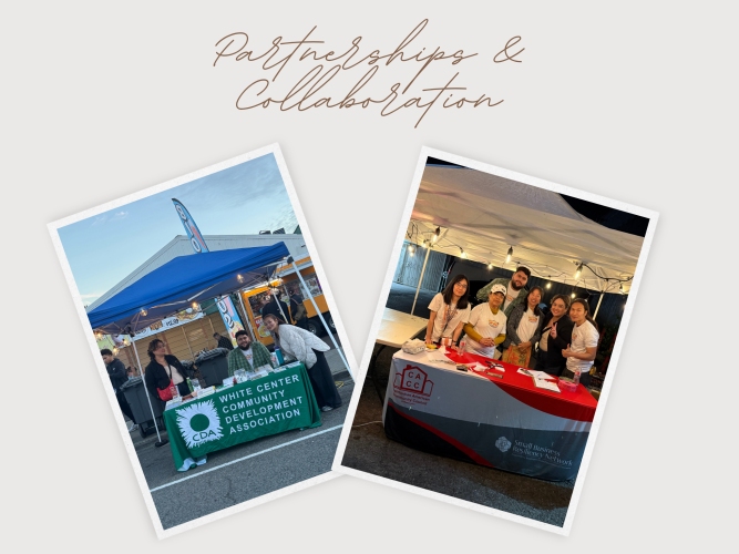 We are excited to share the success of the White Center Night Market, held on September 26 and 27, where our SBRN team had supported 34 small businesses as event vendors. From the very beginning, our team provided hands-on technical assistance including introducing businesses to the opportunity, sharing resources, helping them complete applications, printing online business licenses through DOR and Filelocal, and working directly with King County Health Department to secure necessary permits.